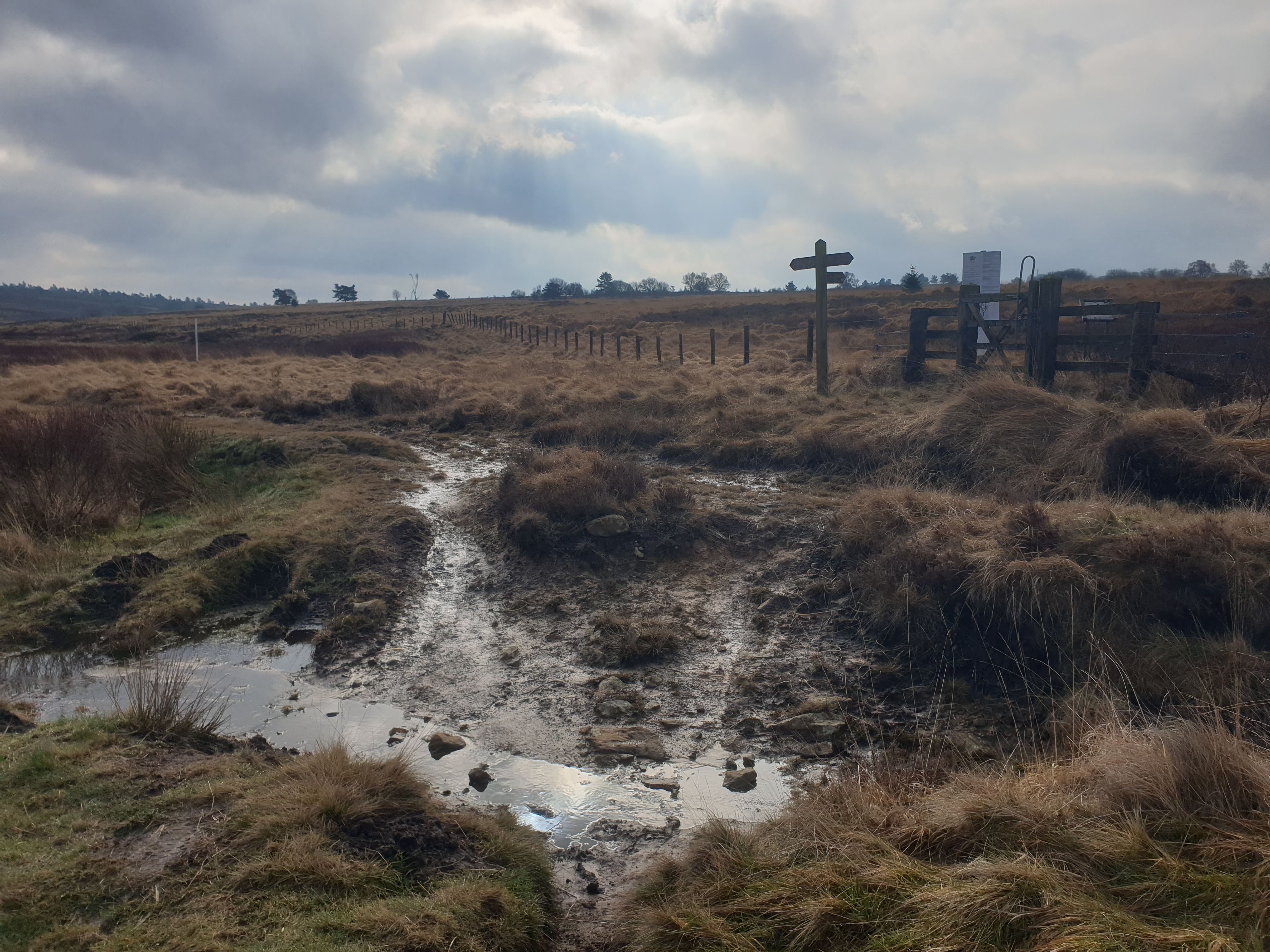 And sometimes peat and water. Note here the footpath through the gate to the right, this is the route we’ll be returning on so despite some warning signs in the future the path is a permissible route.