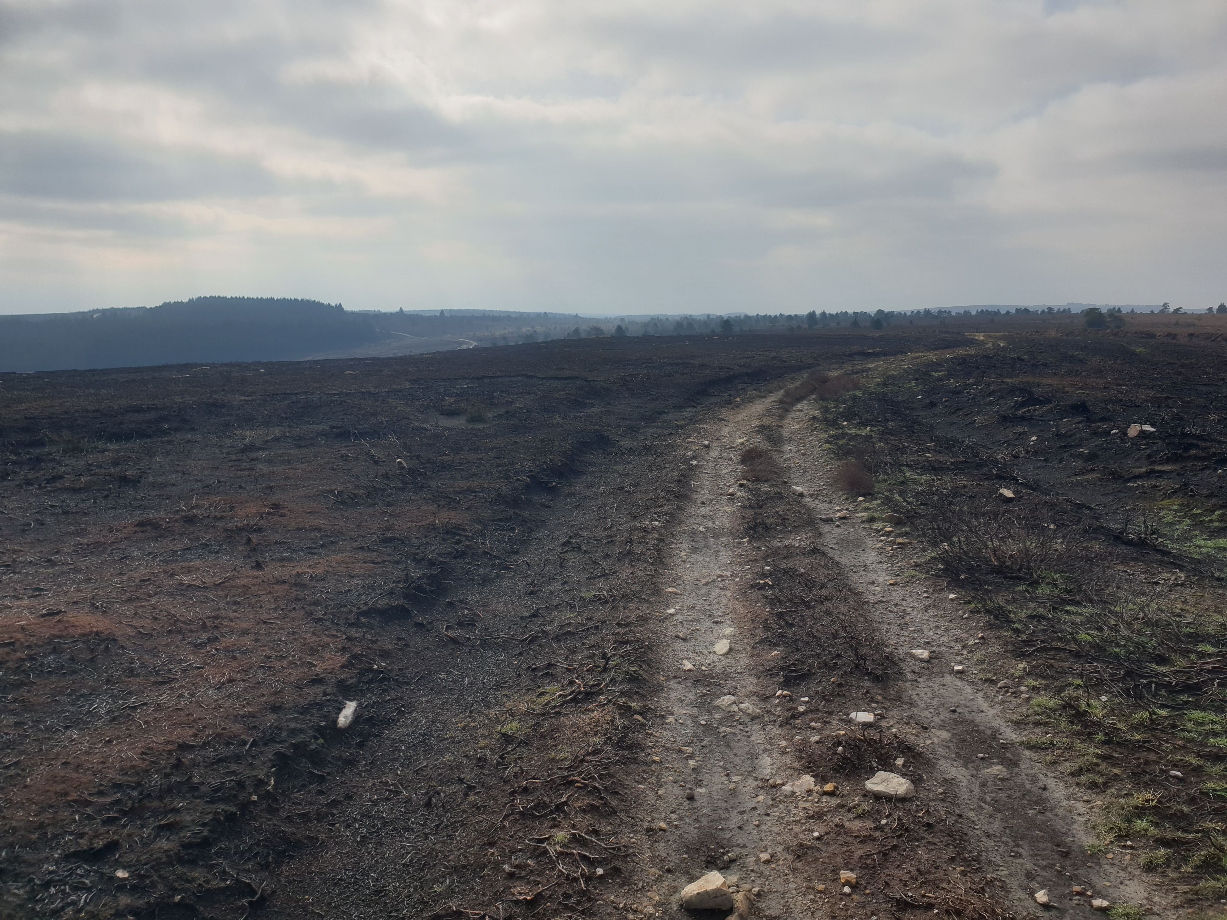 Langdale Moor made the news a fair bit in 2025 due to a large fire which lasted for 40 days. Here are a couple of news reports on the blaze (News Report 1) and (News Report 2). Evidence of the fire and the firebreaks created to stop further fires are visible on this route.