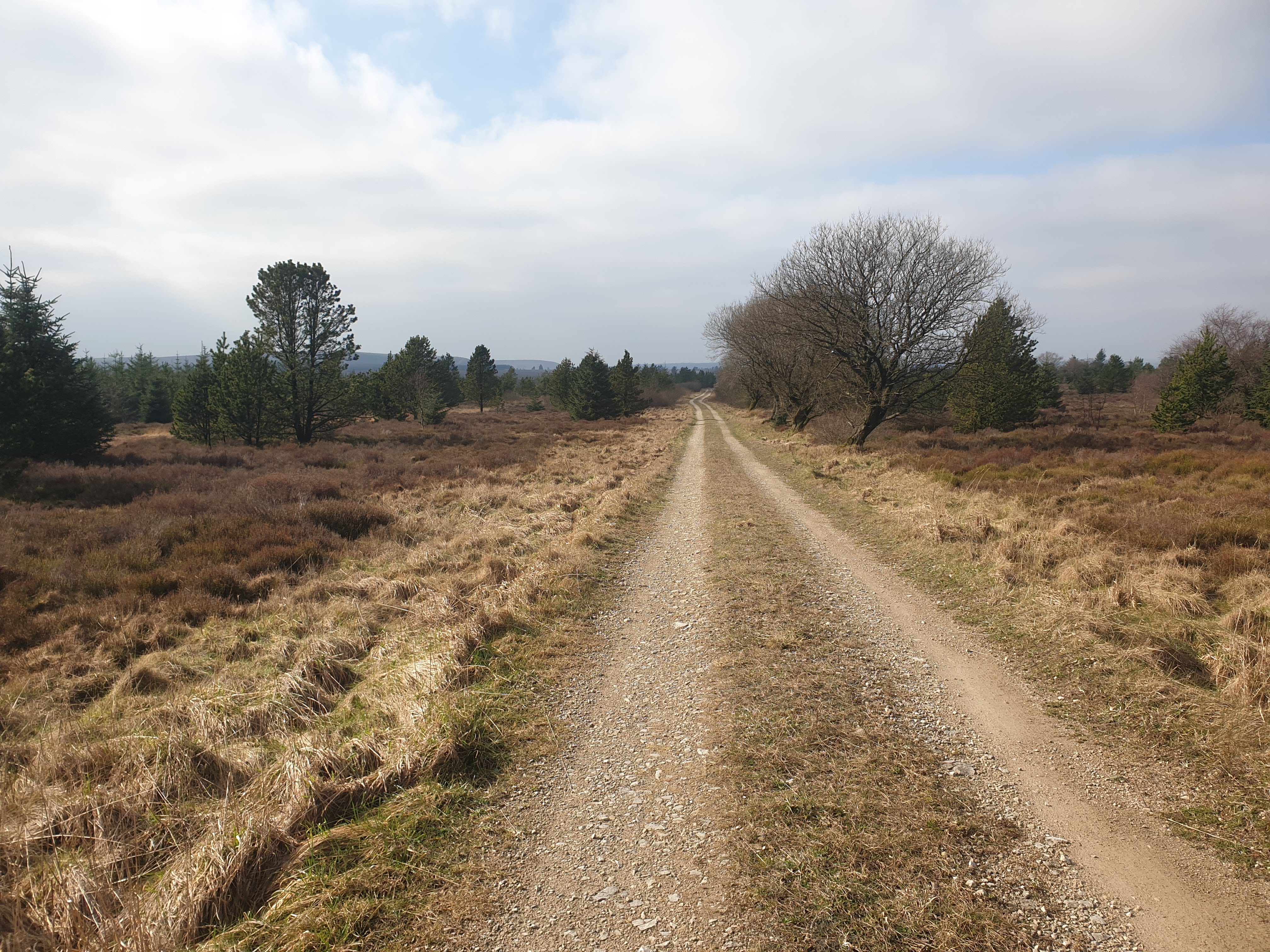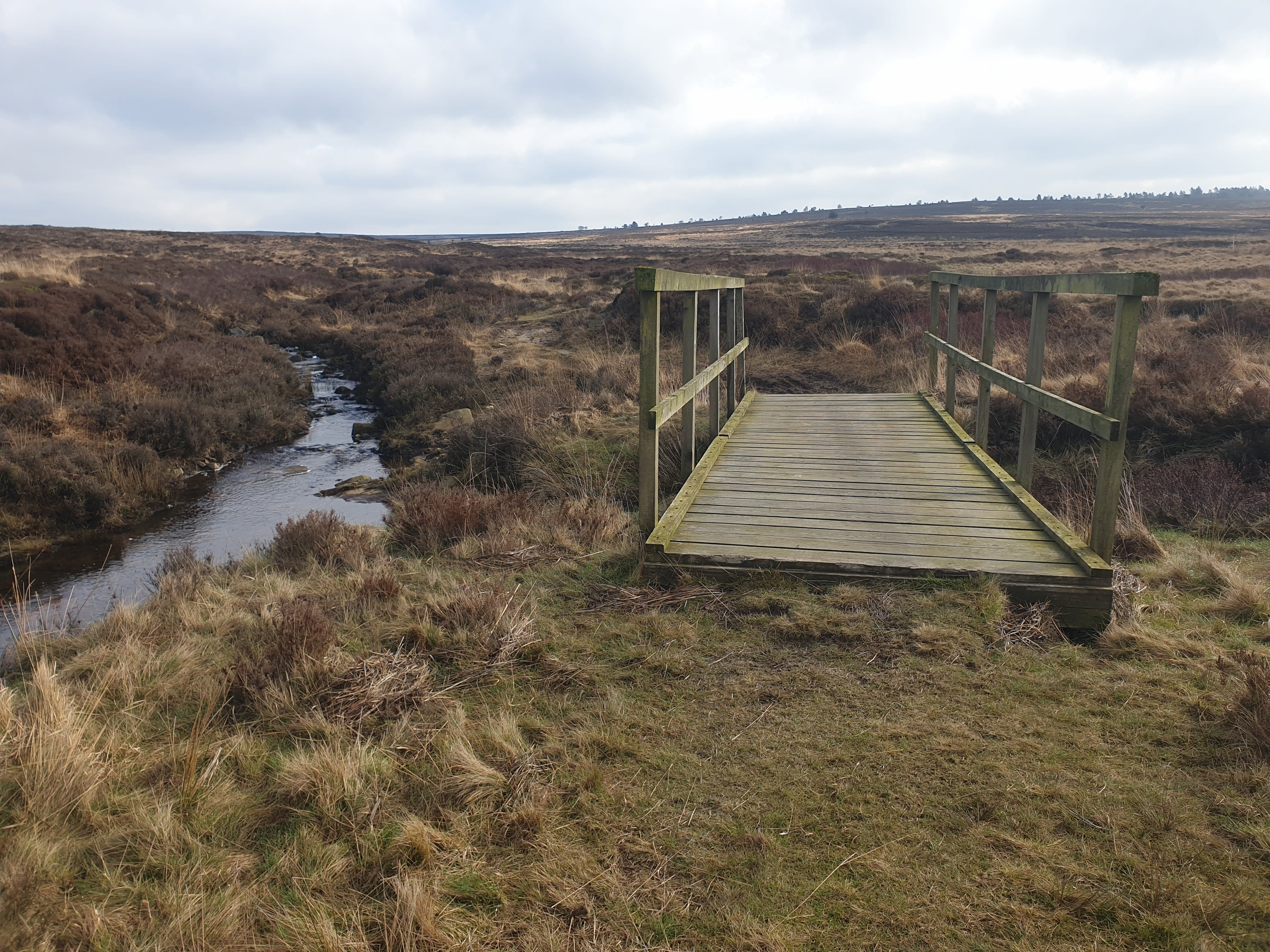 The first (and last) part of the route does have you walk alongside the A169. Not my favourite part of any hike but it had to be done and there is some grassy space along either side of the road. Follow the road south for a short distance and over a stone bridge, then take the gravel track to the left just after the bridge.