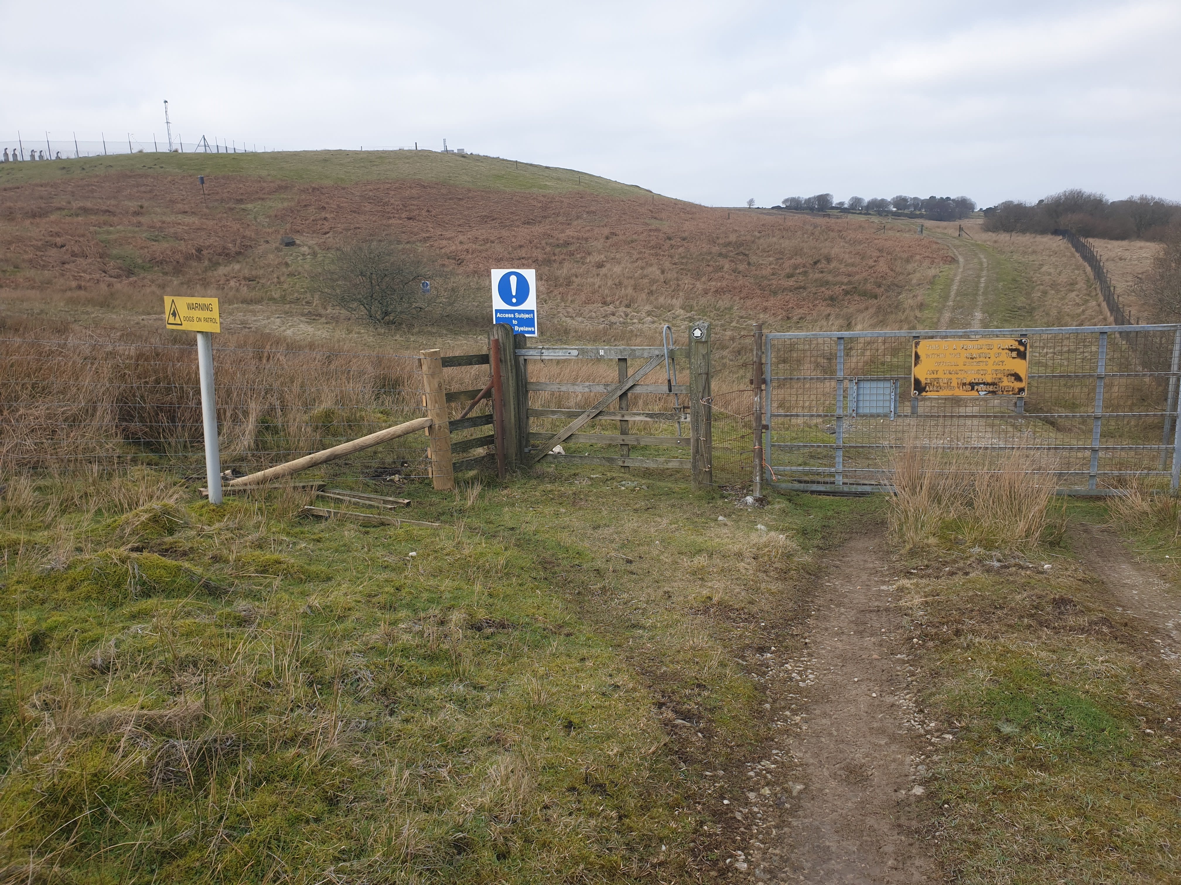 Another collection of warning signs. Note the gate does have a footpath sign on it, it is absolutely fine to follow this path alongside the RAF base.