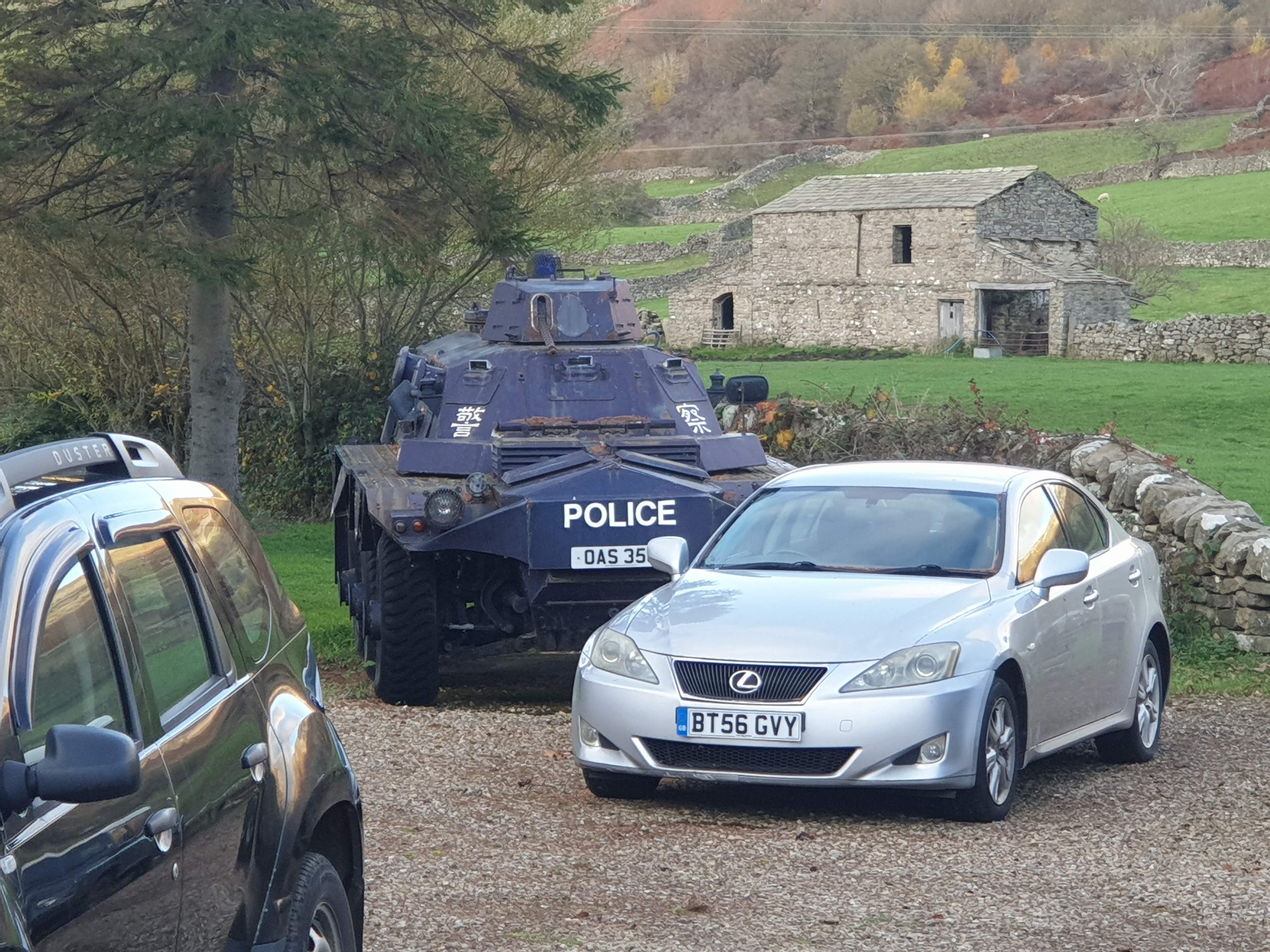 And by Reeth Bridge, a car dealership with an Armoured Car.