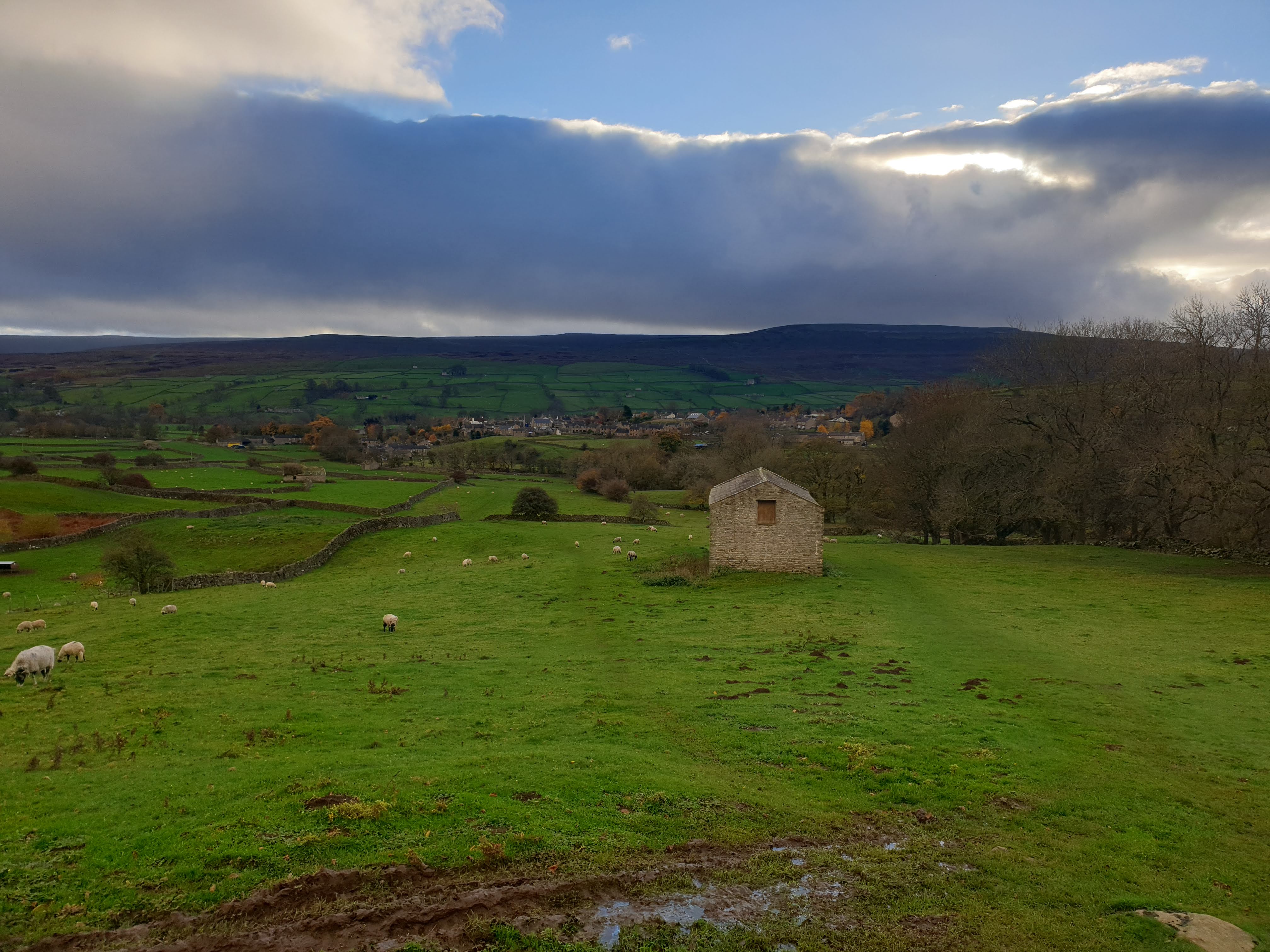 Reeth is a picturesque market town in Swaledale in the Yorkshire Dales, with a large village green and a cobbled car park. You can park on the green and make a little donation using the parking honesty box.