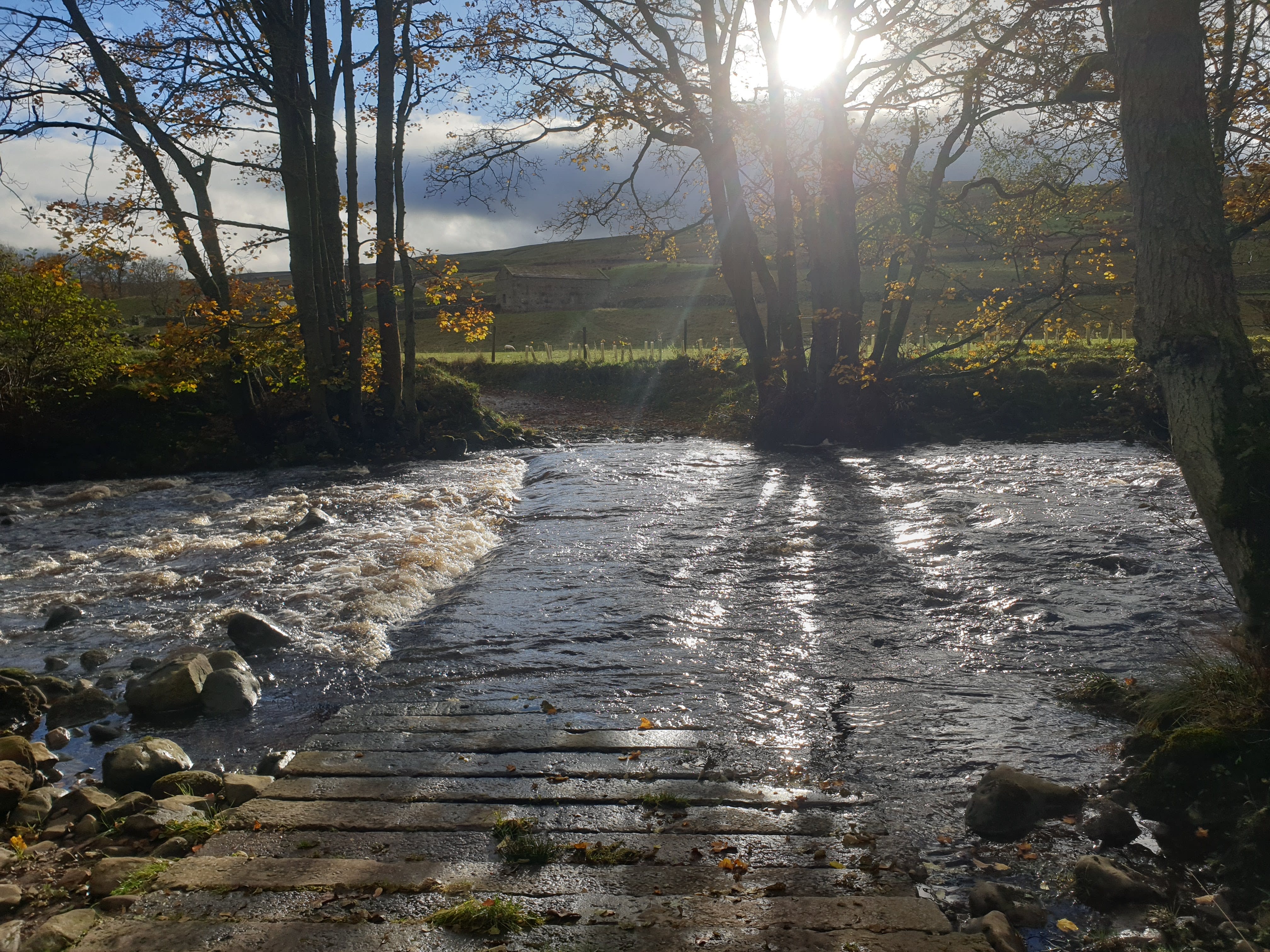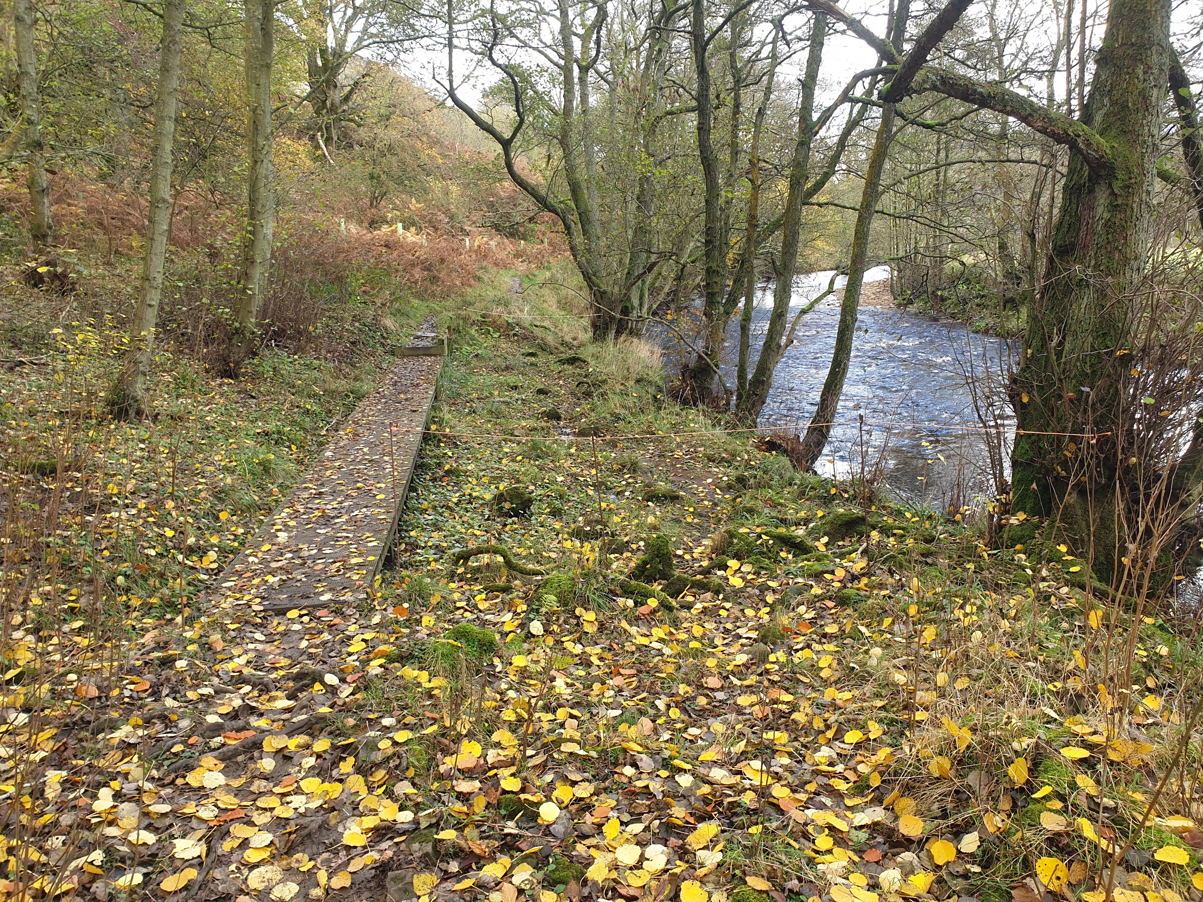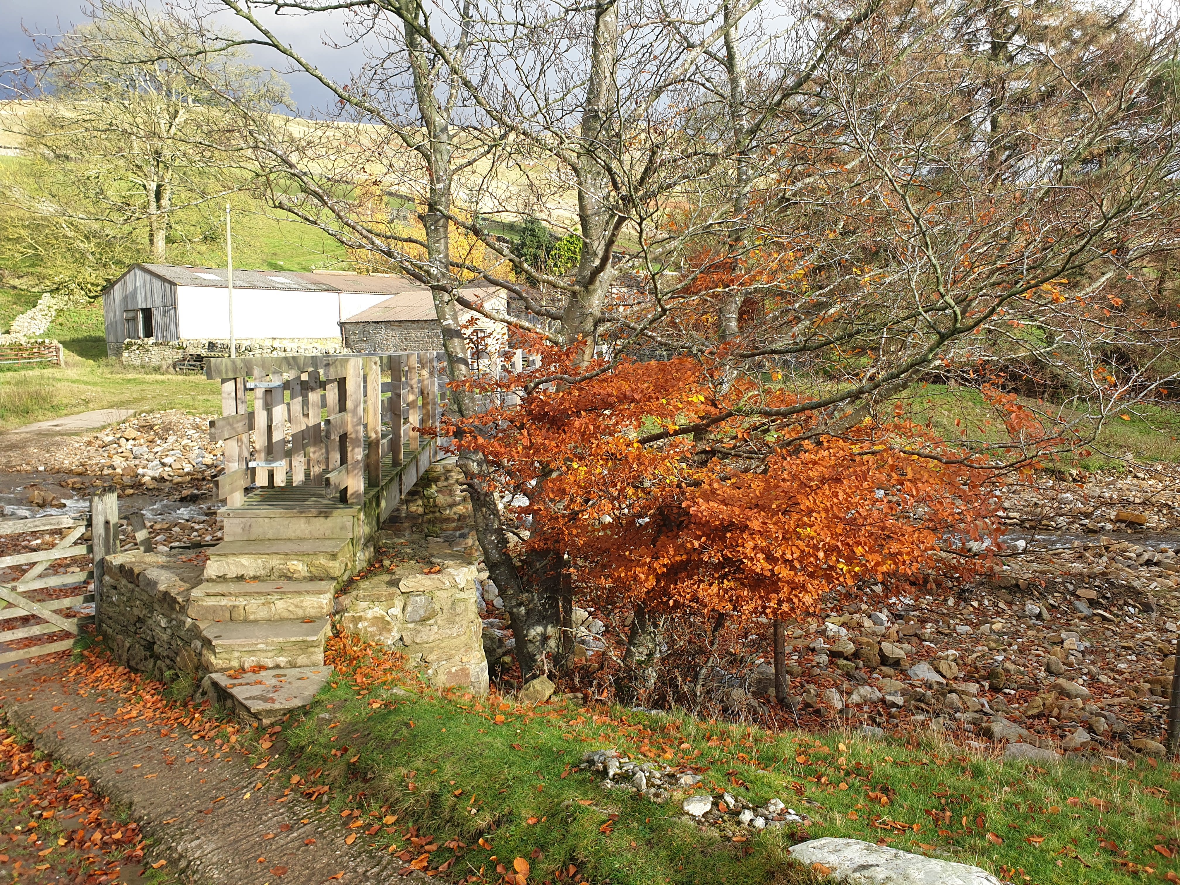Following the riverside path for a short distance to this footbridge. Cross the river at this footbridge, note the slight ford on the left just before the bridge where a stream from Arkle Town meets the river.
