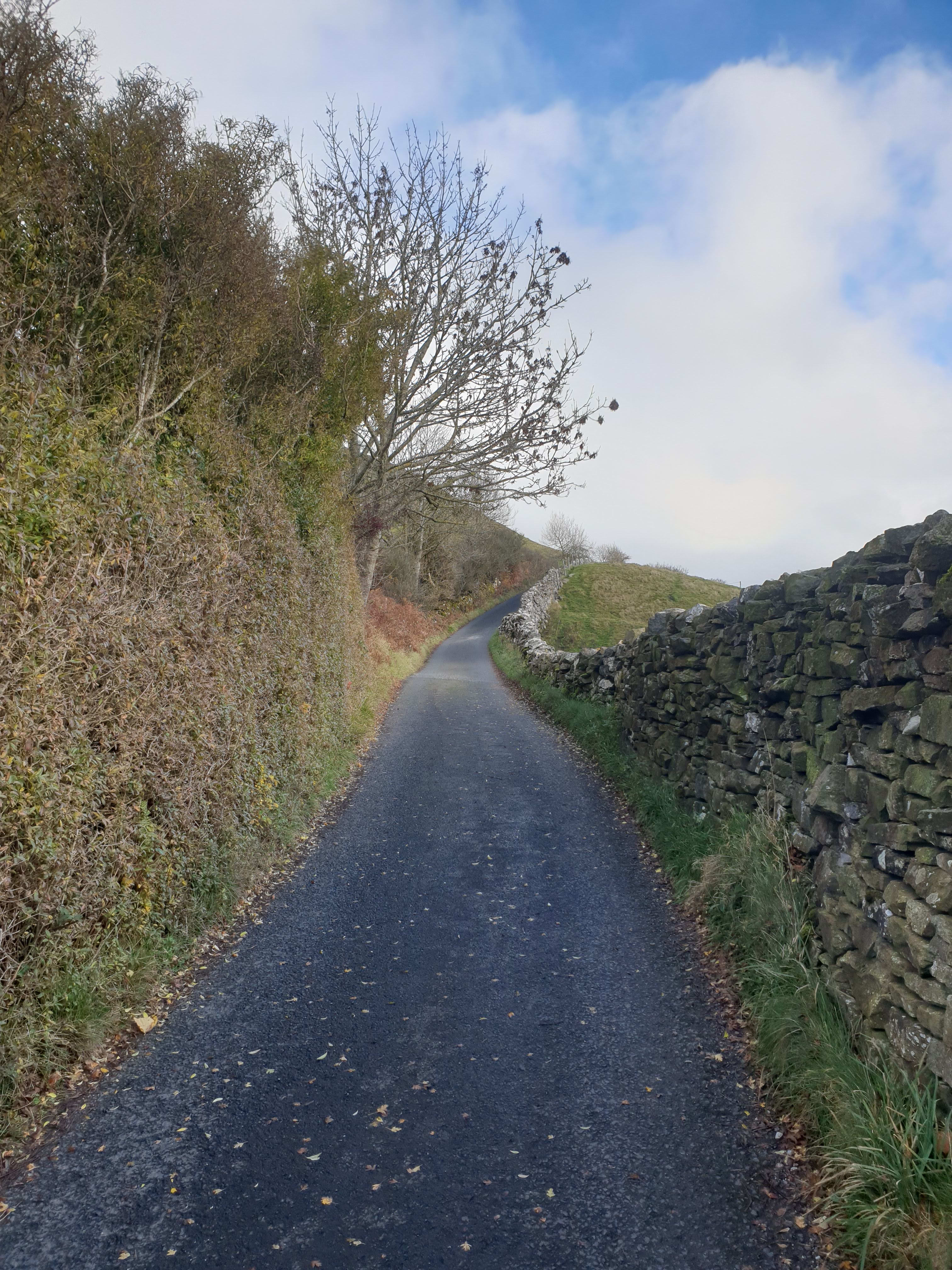 Leaving the village the country road gets a little steep, keep following the road uphill for some lovely views back across the valley.