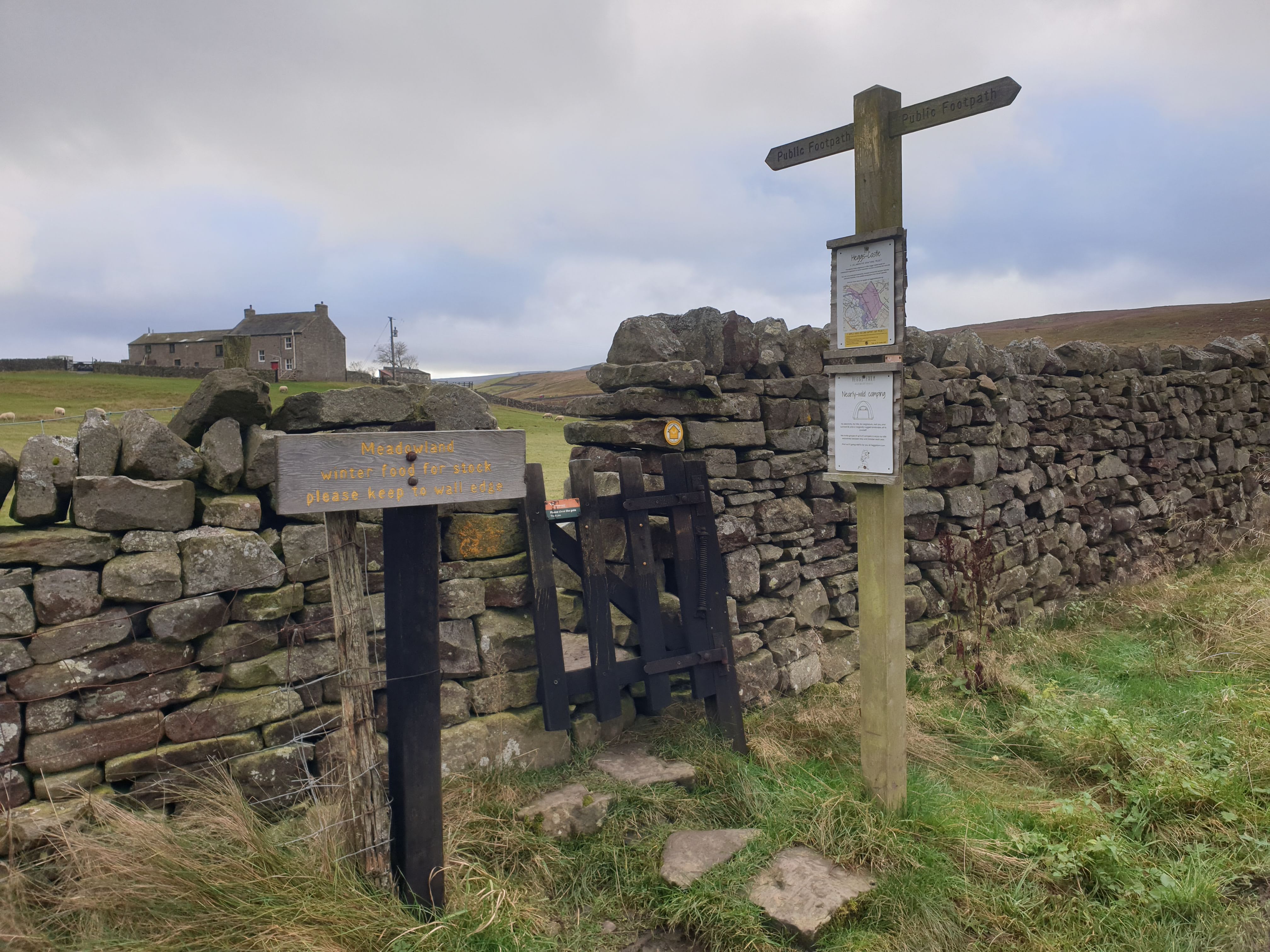 Keep following the road, which then turns into a track as you approach the village of Booze. Sadly there is no sign saying Booze and the village is just a few cottages before you get to a farm. Here, on the gate posts at the entrance to Town Farm are the footpath signs showing the turn to the right.