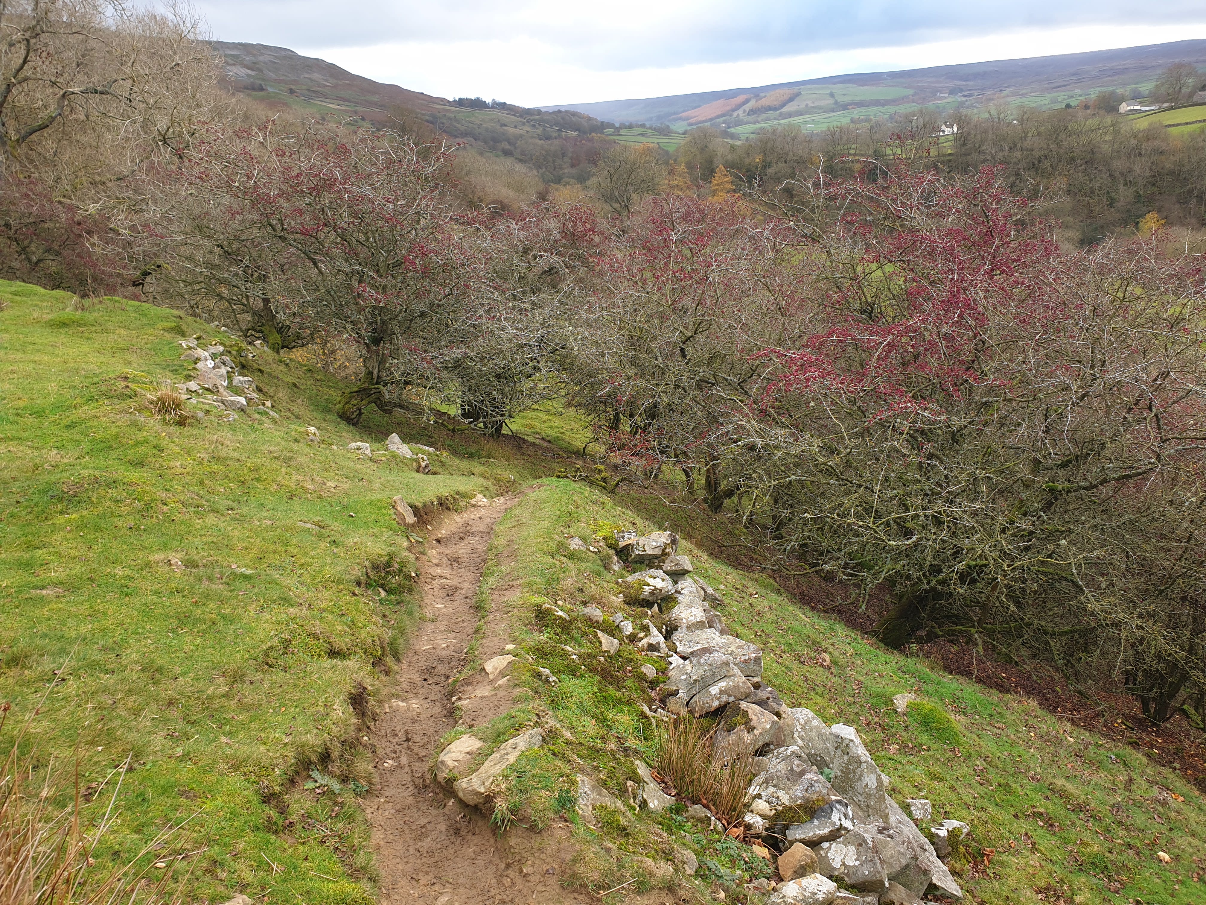 As the path gets to Langthwaite, turn right at this stone bridge and head north east through the street up through the village. It is at this point that we hit the halfway point, the rest of the route is heading back along the other side of the valley to Reeth.